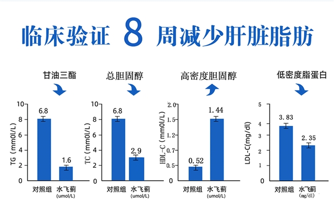 国际医学临床数据表明,100名脂肪肝人群连续8周使用,其甘油三酯下降至1.6,总胆固醇降至2.9,实现多项关键肝功能指标的显著改善 。同期还采用玉米低聚肽、泛酸、烟酸、混合磷脂等协同原料,强化修复链路。