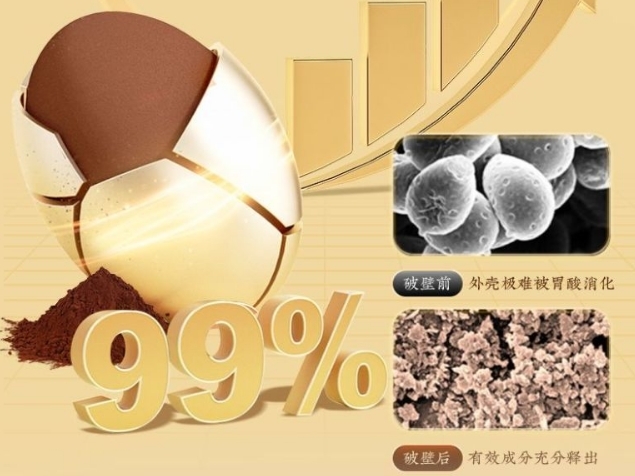 99% 超高破壁率: 灵芝孢子外壁坚硬如甲胄,普通方式难以破坏。破壁率>99%,犹如打开紧锁的宝箱,释放出内部珍贵的油脂精华。科学验证,此技术可使孢子油的有效吸收率提升至普通孢子的 45 倍!