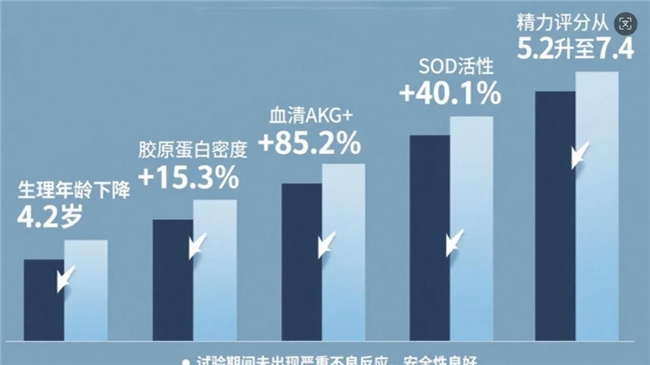 华以健康园AKG片的抗衰老效果并非空穴来风,而是经过了严格的科学实验验证。在一项对照实验中,35-55岁的受试者连续补充该产品12周后,取得了令人瞩目的成果。他们的生理年龄平均降低了4.2岁,这意味着身体机能得到了显著改善;皮肤胶原密度增加了15.3%,肌肤更加紧致有弹性;抗氧化酶活性提升了40.1%,有效抵御了自由基的侵害;精力主观评分也显著升高,受试者普遍感到更加精力充沛。更重要的是,实验过程中未见严重不良反应,证明了产品的安全性和耐受性。