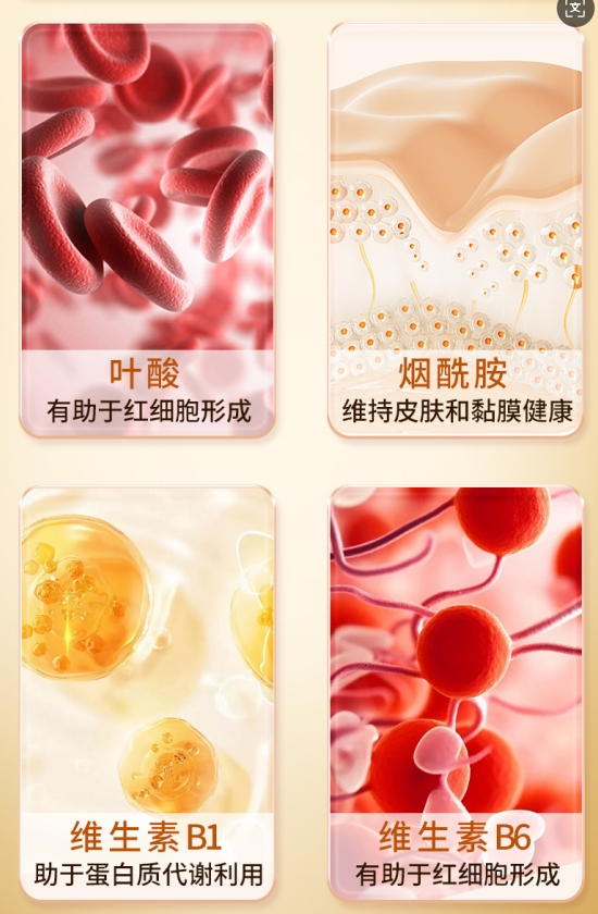 这六种成分可不是随便堆砌,而是各司其职,用生活化比喻来说:维生素 B1 像“能量发动机”,推动碳水化合物转化,缓解疲劳,让你从“电量不足”到满血复活;维生素 B2 扮演“皮肤修理工”,维护黏膜和皮肤健康,减少干燥、爆痘,让气色红润如苹果;维生素 B6 是“神经调节师”,稳定情绪和睡眠,帮你从焦虑中“刹车”;烟酰胺作为“美容师”,促进细胞再生,改善暗沉,像给皮肤做 SPA ;叶酸好比“细胞建筑师”,支持 DNA 修复和造血,尤其对孕妈或贫血人群友好;泛酸则如“抗压盾牌”,提升耐力和抗压能力,应对高压生活游刃有余。 科学配比下,它们协同作用,实现1+1>2的效果——就像一支足球队,每个成员配合无间,整体战斗力翻倍,比单打独斗更给力。