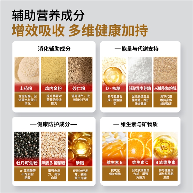 创新融合活性益生菌群、复合维生素矩阵与优质蛋白成分,为机体提供全面且易吸收的营养支持,精准满足特殊人群的健康管理需求。