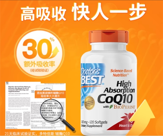 第十名:金达威辅酶Q10(国产・还原型/脂溶性泛醇)