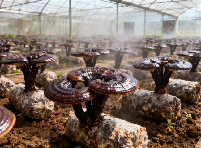 人工套袋:孢子成熟前夜,农人打着手电为每朵灵芝穿上食品级无纺布袋,晨露凝结时,孢子粉如初雪落袋