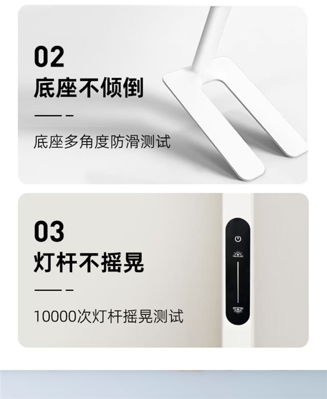 品质:工业级稳固与耐用。灯具通过8000次灯头摆动测试和10000次灯杆摇晃测试,品质扎实,耐用性远超普通照明产品。