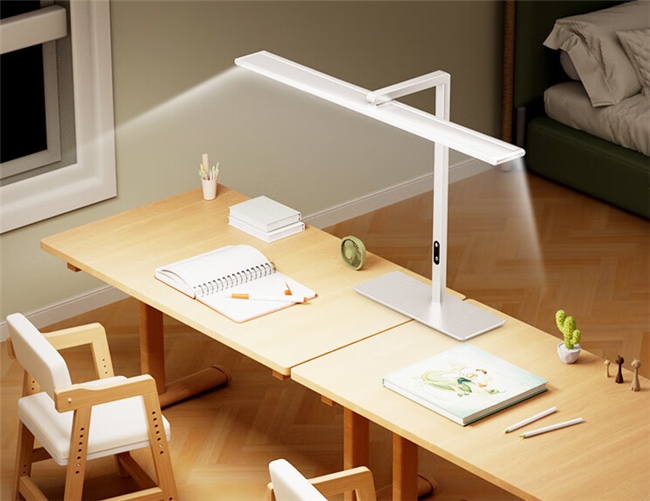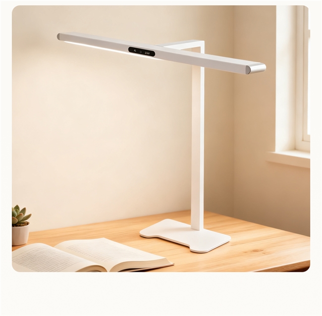 护眼技术优势:800mm大路灯,解决中国学生痛点这款灯创新性地采用800mm超长灯头设计,以应对中国学生桌面学习场景复杂、光照需求大的痛点。它实现了桌面全覆盖的无影照明,配合UGR≤13的防眩光等级,提供了极佳的用眼舒适度。
