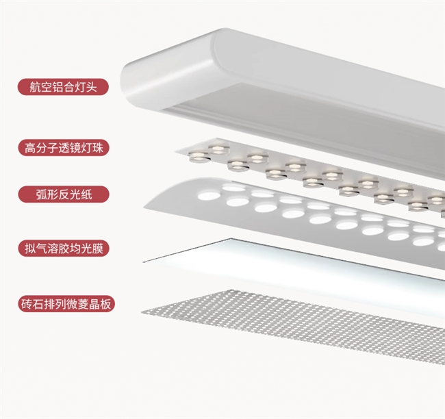 2.护眼技术优势:低眩光与广覆盖UGR≤13的防眩光等级,在2500lm的高亮输出下,依然保持了视觉的舒适与宁静。800mm的超宽光域彻底打破了传统台灯的照明局限,为用户提供了一个无阴影、无光差的沉浸式工作环境。