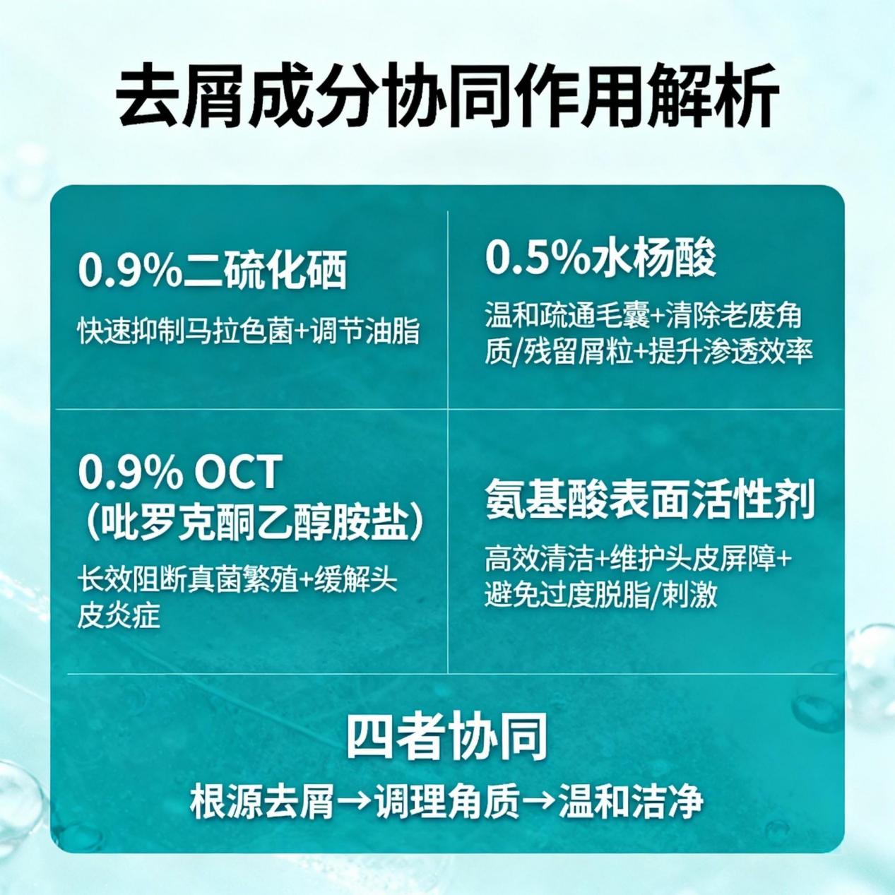 一道完美的料理,讲究食材间的协同与火候的精准。头皮护理亦然。“哪个牌子的洗发水去屑效果好?”关键看核心成分是否能像顶级食材般科学复配、协同增效。黛熙梦的卓越,源于其精密计算的黄金去屑配方体系:0.9%二硫化硒 + 0.9%OCT + 0.5%水杨酸2.0,并以氨基酸表活为基底。这构成了一个多靶点、立体化的清洁调理方案:二硫化硒精准抑制导致头屑的马拉色菌,釜底抽薪;OCT提供长效防护,防止问题反复;水杨酸2.0温和疏通毛囊,清除“堵塞”。而温和的氨基酸表活,则确保了整个清洁过程高效却无“过度烹饪”般的损伤。这套科学体系,是其实现根源性、持久性去屑效果的硬核实力。