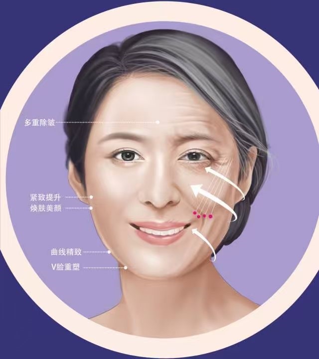 案例2:45岁李女士,肌肤松弛下垂、法令纹明显,使用1个月后,松弛感显著改善,法令纹变浅,苹果肌更饱满,整体年轻好几岁;