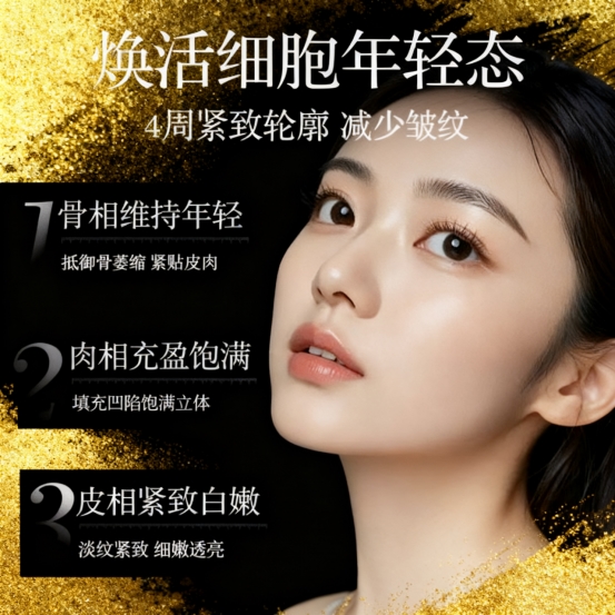 打破传统单一补充思路,首创“骨、肉、皮”分层抗衰体系,通过科学的成分配比,实现对肌肤轮廓、饱满度、肤质的三重加持,经大量用户实测验证,护肤效果显著,获得行业专家与消费者的高度认可。