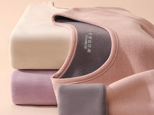 内衣内层经过磨毛工艺处理,磨毛质感相对细腻,在温度较低的天气环境下,接触身体后能在一定时间内带来温暖感受。