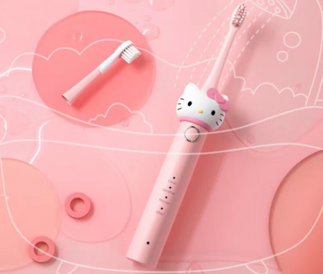 有着三丽鸥联名的可爱造型,外观颜值超高,配色明快大方,深受小朋友追捧。机身重量轻盈,孩子长时间握持无负重感,握柄包裹防滑软胶,握持稳固不易滑落。刷毛经过磨圆处理,触感柔软,温和清洁护龈,IPX7级防水支持全身水洗,操作简单,适配4-13岁儿童。