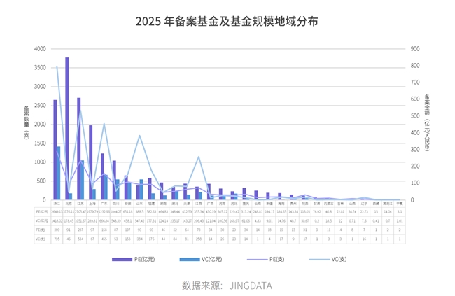 地域分布呈现“南多北重”格局,基金备案活动高度集中于长三角(浙江、江苏)、粤港澳大湾区(广东)及北京,区域集中度高。