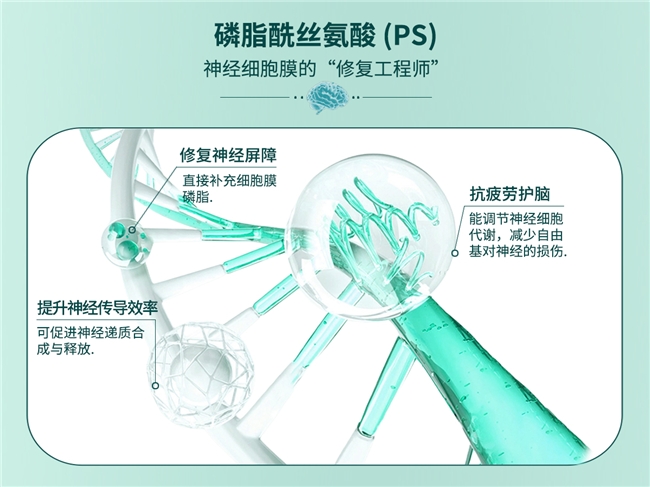 磷脂酰丝氨酸承担细胞膜修护与信号传导任务,叶酸协同甲钴胺降低同型半胱氨酸、提升递质生成,全面实现营养供给与结构修护闭环。配方创新机制有效提升神经修护速率,长期养护下吸收率、修护率同步提升,周期无平台。系统闭环养护让神经系统健康状态持续优化,用户体验持久焕发。